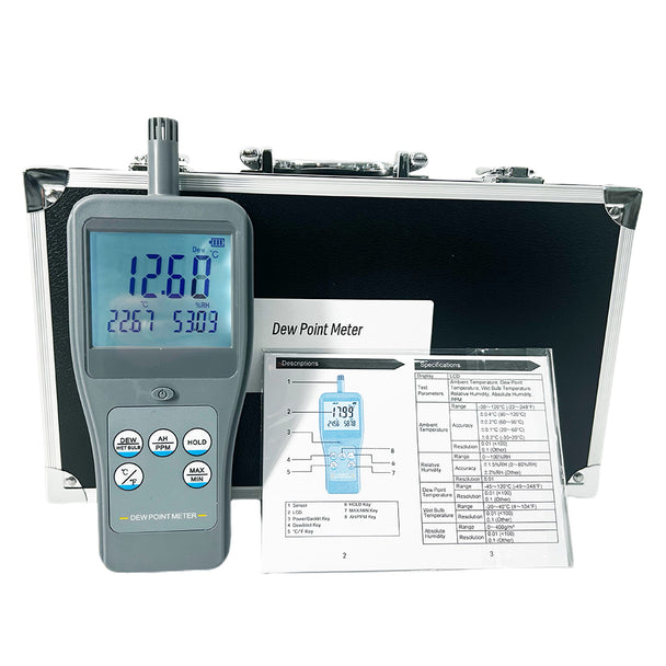 VTSYIQI Digital Dew Point Meters Precision Dew Point Meter with Temperature Unit °C/°F Test Parameters Ambient Temperature Relative Humidity Dew Point Temperature Wet Bulb Temperature Absolute Humidity PPM