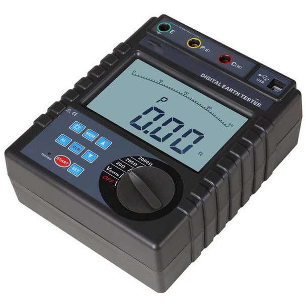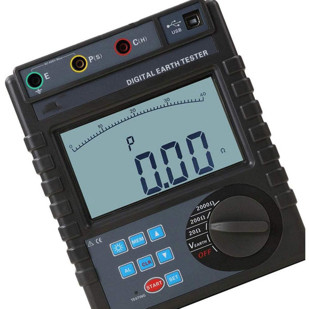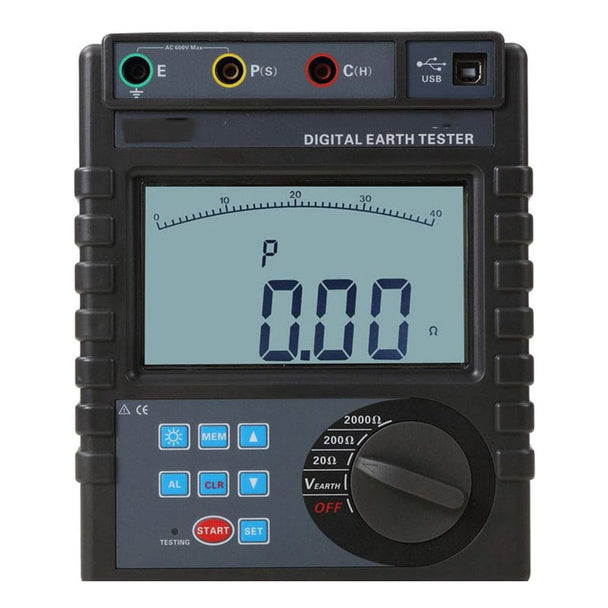 VTSYIQI Digital Earth Resistance Tester Ground Resistance Meter with Earth Voltage Measurement AC 0~600V Ground Resistance Range 0.01Ω~2000Ω Data Storage Function