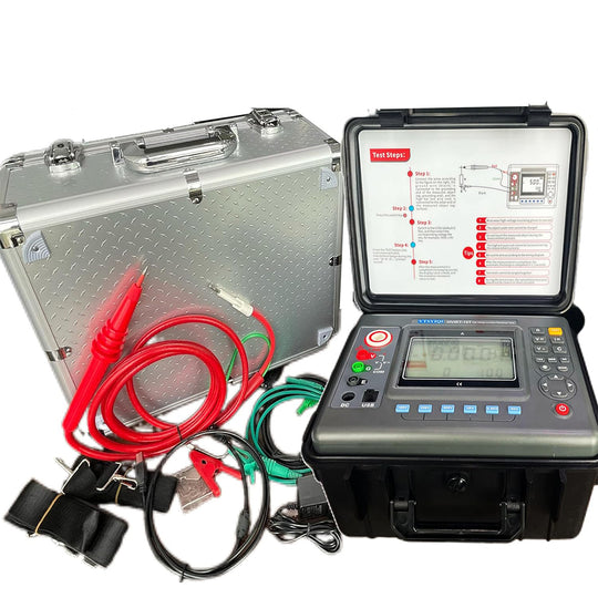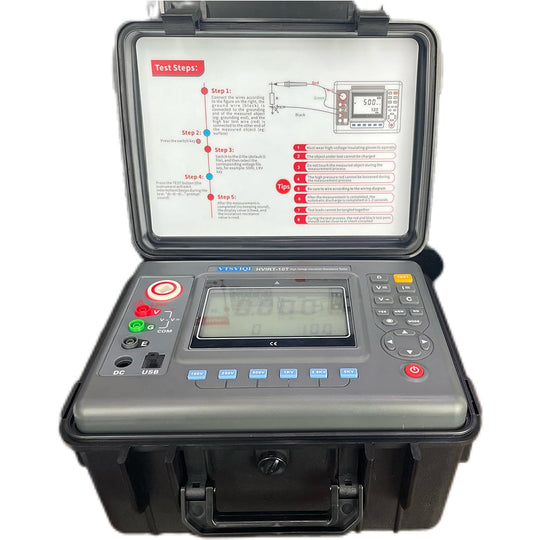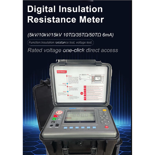 VTSYIQI 5KV High voltage Insulation Tester Digital Insulation Resistance Tester with Range 100V/250V/500V/1000V/2500V/5000V 0.01MΩ-10TΩ Resolution 0.01MΩ Waterproof Voltmeter LCD Display Faeature: Function---Insulation resistance tester, voltage test, DC current test, capacitance test Basic condition:23℃±5℃,below 75%rh Rated voltage:100V、250V、500V、1000V、2500V、5000V...Regular price $930.00 -