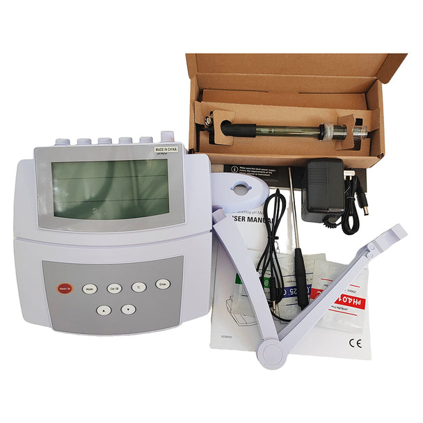 VTSYIQI Benchtop PH Meter for Acidity with 50 Sets Data Storage mV Measuring Range -1999~1999mV pH Measuring Range -2.00~18.00pH Movable Bracket PH Buffer Powder 6-inch LCD Display Auto-Shut Off Function 3 Points Calibration