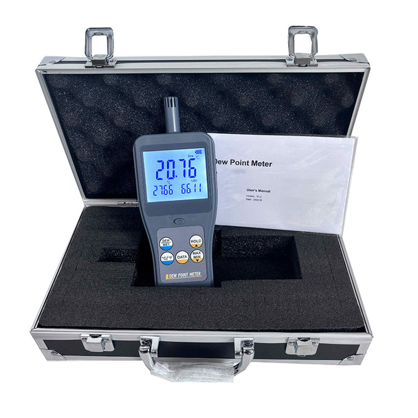 VTSYIQI Digital Dew Point Meter Dew Point Monitors Dew Point Measurement with Ambient Temperature -30~120°C (-22~248°F) Relative Humidity 0~100%RH Dew Point Temperature -45~120°C (-49~248°F) Wet Bulb Temperature -20~40°C (-4~104°F)