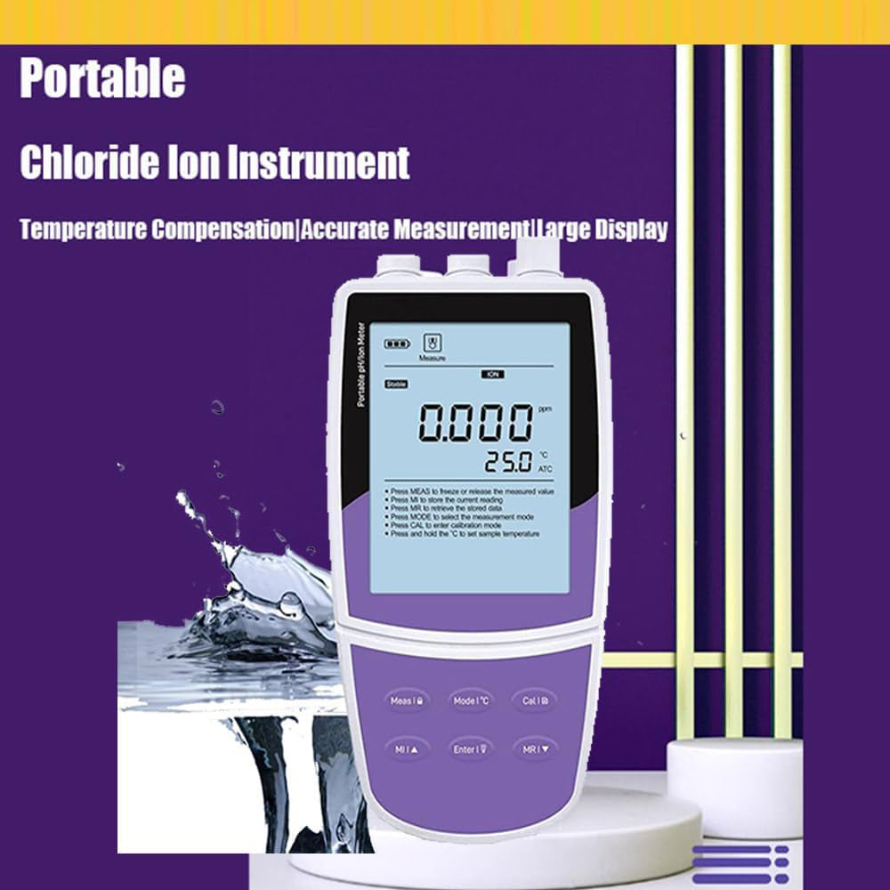 VTSYIQI Chloride Ion Meter Tester CL Ion Meter Concentration Meter with Range 1 to 35000 ppm Calibration Fluid Accuracy ±0.5% and 2 to 5 Point Calibration Backlight Display for Testing Chloride Ion