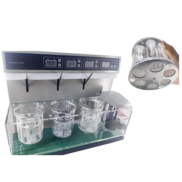 VTSYIQI Tablet Disintegration Apparatus with Flat Bottom Beaker Volume 1000ml Number of Hanging Glass Tubes 18 Basket Assembly 3 Basket Round-trip Frequency (30~32) times/min Basket Round Trip (55±1)mm