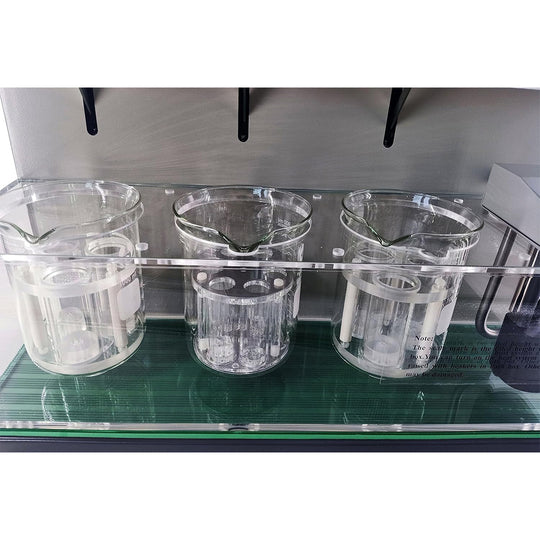 VTSYIQI Tablet Disintegration Apparatus with Flat Bottom Beaker Volume 1000ml Number of Hanging Glass Tubes 18 Basket Assembly 3 Basket Round-trip Frequency (30~32) times/min Basket Round Trip (55±1)mm