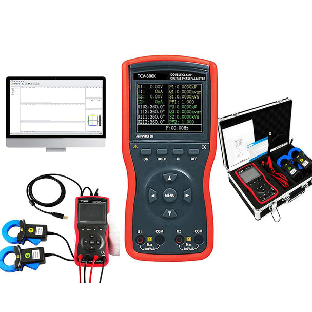 VTSYIQI Digital Dual Clamp Phase Voltammeter Double Clamp Phase Voltammeter with Range Automatic Shift Apparent Power 12kVA Active Power -12~12kWVAR Power Factor -1~+1 USB Interface