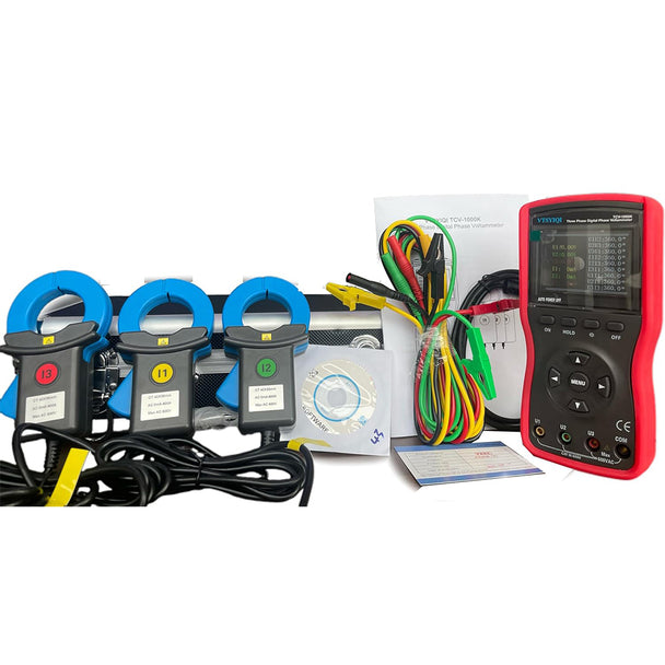 VTSYIQI Digital Three Phase Voltmeter Three-Clamp Phase Voltammeter with Range 0.0mA to 600A 0.00V to 600V CT Size Diameter Φ40mm IEC61010-1 for Two AC voltages Current Testing