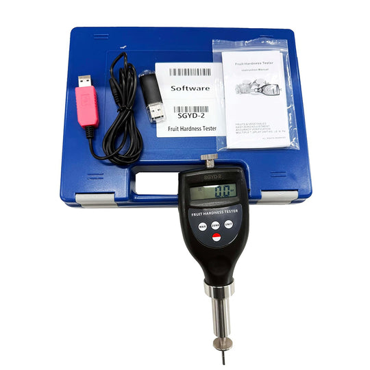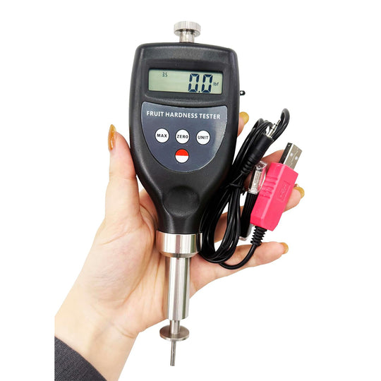VTSYIQI Digital Fruit Penetrometer Fruit Hardness Tester with USB Data Cable and Software of Small Fruit Soft Fruit Hardness Tester About this item Range: 0.2~5.0 kgf/cm² Unit: kgf(kgf/cm²) lbf(lbf/cm²) N(N/cm²) Resolution: 0.01/0.1 Accuracy: ±(1%H+0.1)kgf/cm² Pressing Depth:...Regular price $273.00 -