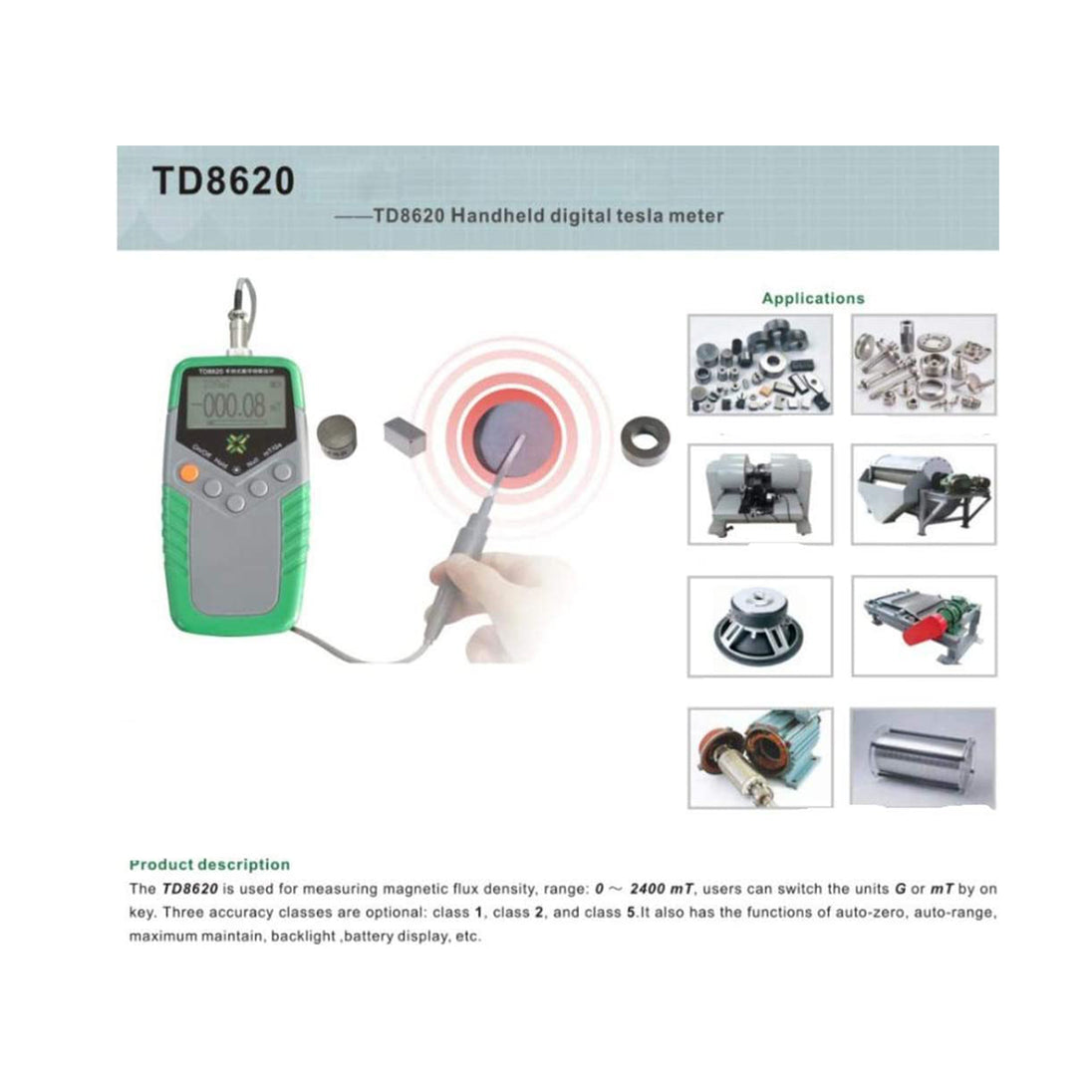 The design of TD8620 hand-held digital Tesla meter follows the IEC-61010-1 safety standard, and conforms to the national verification regulation of JJG242-1995 Tesla meter.