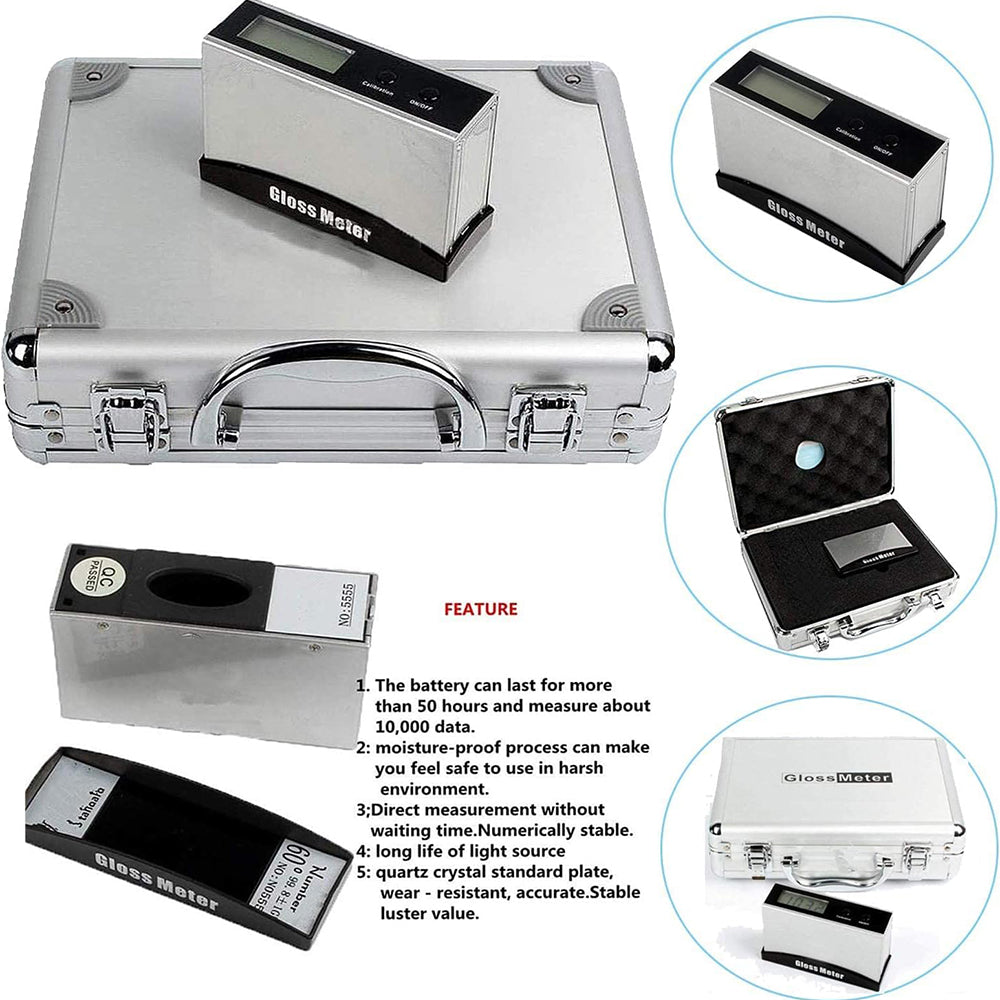 VTSYIQI Gloss Meter 60 Degree Glossmeter Glarimeter for Marble Paint Granite Woodware 0 to 199Gu Measurement Range