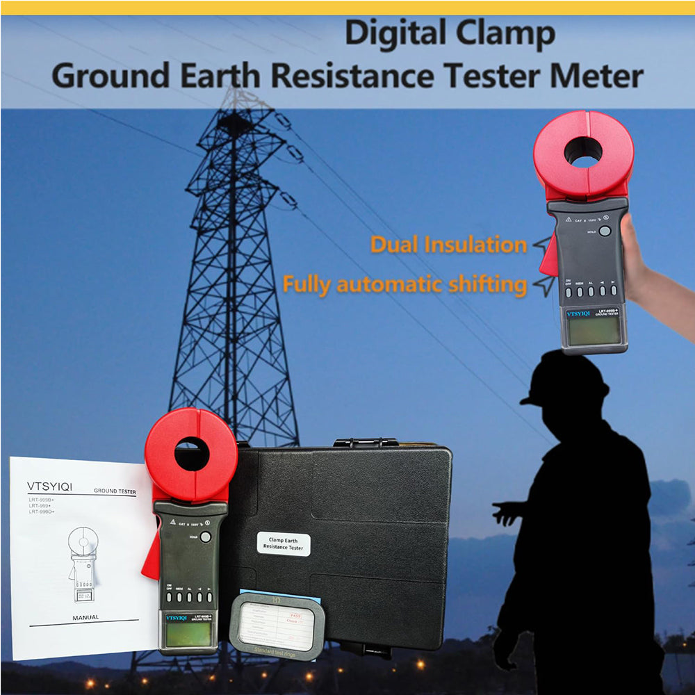- VTSYIQI Ground Resistance Tester Earth Resistivity Tester with Resistance Range 0.010Ω~200Ω Clamp Jaw Size Φ32mm Data Storage 99 Groups Alarm Threshold Setting Range Resistance: 1Ω~199Ω Resistance Resolution 0.001Ω