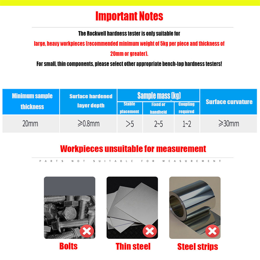 Measuring range : HLD (170-960),HRC (17.9-69.5),HB (19-683),HV (80-1042),HS (30.6-102.6),HRA(59.1-88),HRB (13.5-101.7)