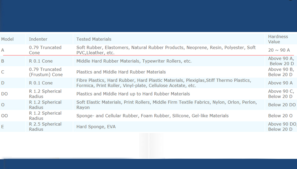 It meets standards of DIN 53505, ISO 868, ISO 7619, ASTMD 2240, JISK7215.