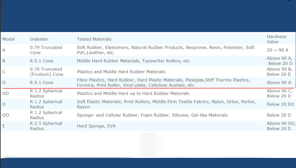 It meets standards of DIN 53505, ISO 868, ISO 7619, ASTMD 2240, JISK7215.