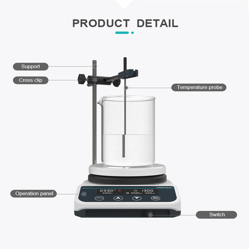 VTSYIQI Heating Magnetic Stirrer Lab Magnetic Hotplate Stirrer with Speed Range 50-1500RPM Max Stirring Capacity 2L(H2O) Max Temp of Hot Plate 310℃ RPM Increment 10 RPM Digital Screen Keypad Temperature Sensor PT1000/Outside PT1000