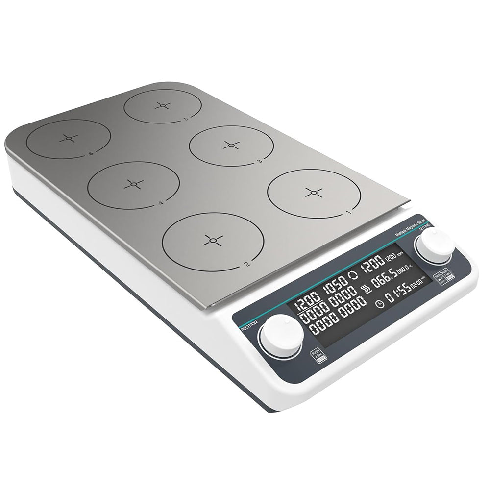VTSYIQI Magnetic Hotplate Stirrers 6 Position Heating Magnetic Mixer with Synchronous or Asynchronous Control Maximum Countertop Temperature 120 °C Max Stirring Volume 6 * 500 ML Speed Range 50-1200RPM LCD Display