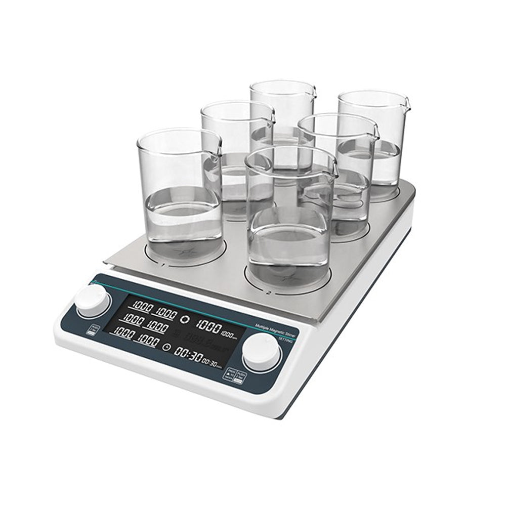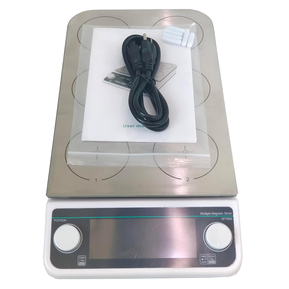 VTSYIQI Multi Position Hotplate Stirrer 6 Position Magnetic Stirrer with Max Stirring Volume 6 * 500 ML Speed Range 50-1200RPM Plate Material 304 Stainless Steel Can be Run Synchronously or Asynchronously Temperature Room Temp - 120℃