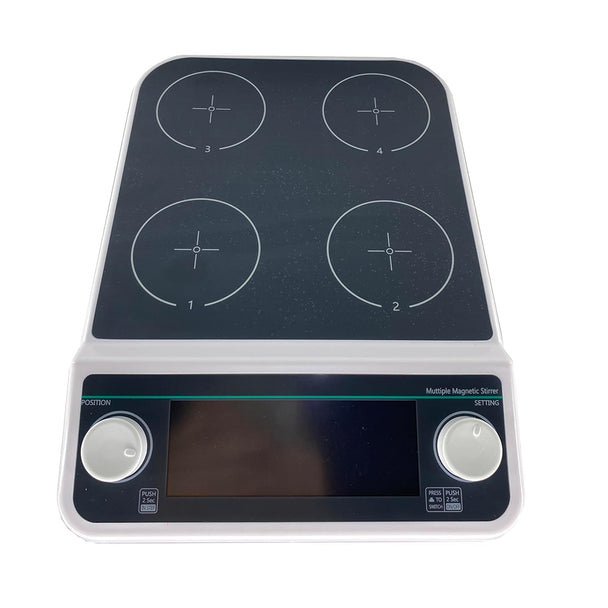 VTSYIQI Multiposition Magnetic Stirrer 4 Position Magnetic Mixer with LCD Liquid Crystal Display Mixer Max Stirring Volume 4 * 500 ML 4 Stirring Points Rotating Speed 50-1500 RPM Plate Size 110MM Brushless Motor Synchronized or Asynchronous Control