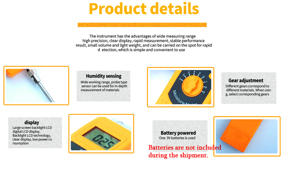 (1)Soil Moisture Meter is portable, compact, easy to use and the moisture measurement readings are instant.