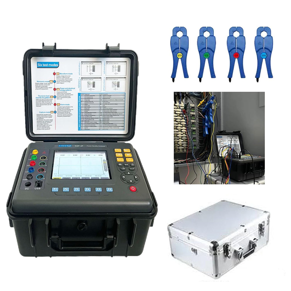 3 phase power quality analyzer is a comprehensive test instrument specially designed by our company for three-phase, inr-functional, intelligent and simple man-machine operation Easy to use, large LCD color display, high resolution, bilingual interface in Chinese and Enalish. box structureandotherfaaturessimultaneousmeasurementof4 currents(ABC three-ohase and minimum vaoues voltages (ABC three -phase vollale and neutral to ground vollael current and vollage peaks, maximum reactive power, apparent power, power factor, displacement power factor, active energy, reactive energy, apparent energy,rarimonic ratio, total harmonic distortion Degree