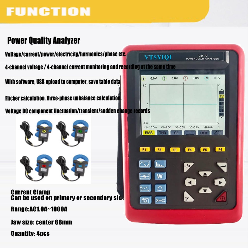 VTSYIQI 3-Phase Power Quality Analyzer Power Quality Monitoring Equipment with Test Range 1.0A~1000A 4 Current Clamp Sensor Capture and Monitoring Capabilities