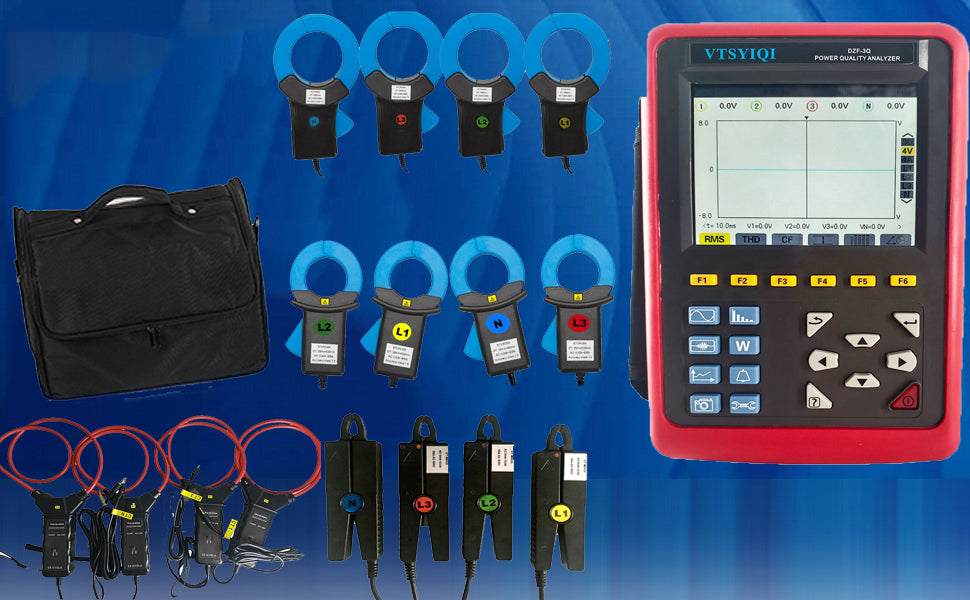 VTSYIQI 3 Phase Power Quality Meter Power Quality Monitor with Current Range 10mA~6000A Full Set CT Size Ф8mm+Ф40mm+Ф68mm+Ф300mm Automatic Phasor Diagram Display USB Interface PC Software