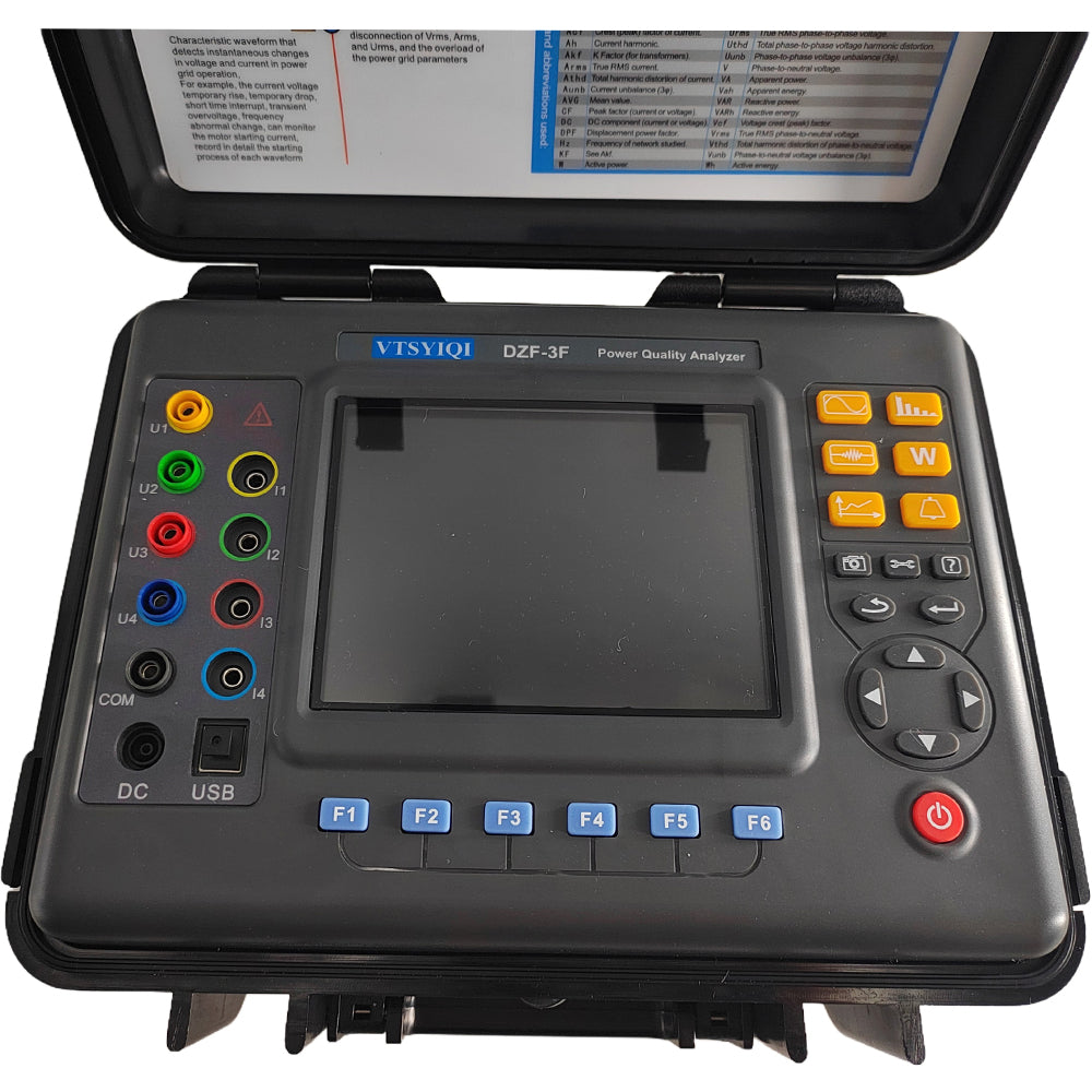 3 phase power quality analyzer is a comprehensive test instrument specially designed by our company for three-phase, inr-functional, intelligent and simple man-machine operation Easy to use, large LCD color display, high resolution, bilingual interface in Chinese and Enalish. box structureandotherfaaturessimultaneousmeasurementof4 currents(ABC three-ohase and minimum vaoues voltages (ABC three -phase vollale and neutral to ground vollael current and vollage peaks, maximum reactive power, apparent power, power factor, displacement power factor, active energy, reactive energy, apparent energy,rarimonic ratio, total harmonic distortion Degree