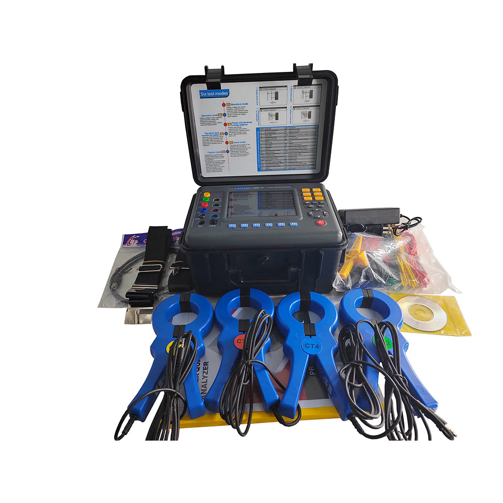 3 phase power quality analyzer is a comprehensive test instrument specially designed by our company for three-phase, inr-functional, intelligent and simple man-machine operation Easy to use, large LCD color display, high resolution, bilingual interface in Chinese and Enalish. box structureandotherfaaturessimultaneousmeasurementof4 currents(ABC three-ohase and minimum vaoues voltages (ABC three -phase vollale and neutral to ground vollael current and vollage peaks, maximum reactive power, apparent power, power factor, displacement power factor, active energy, reactive energy, apparent energy,rarimonic ratio, total harmonic distortion Degree