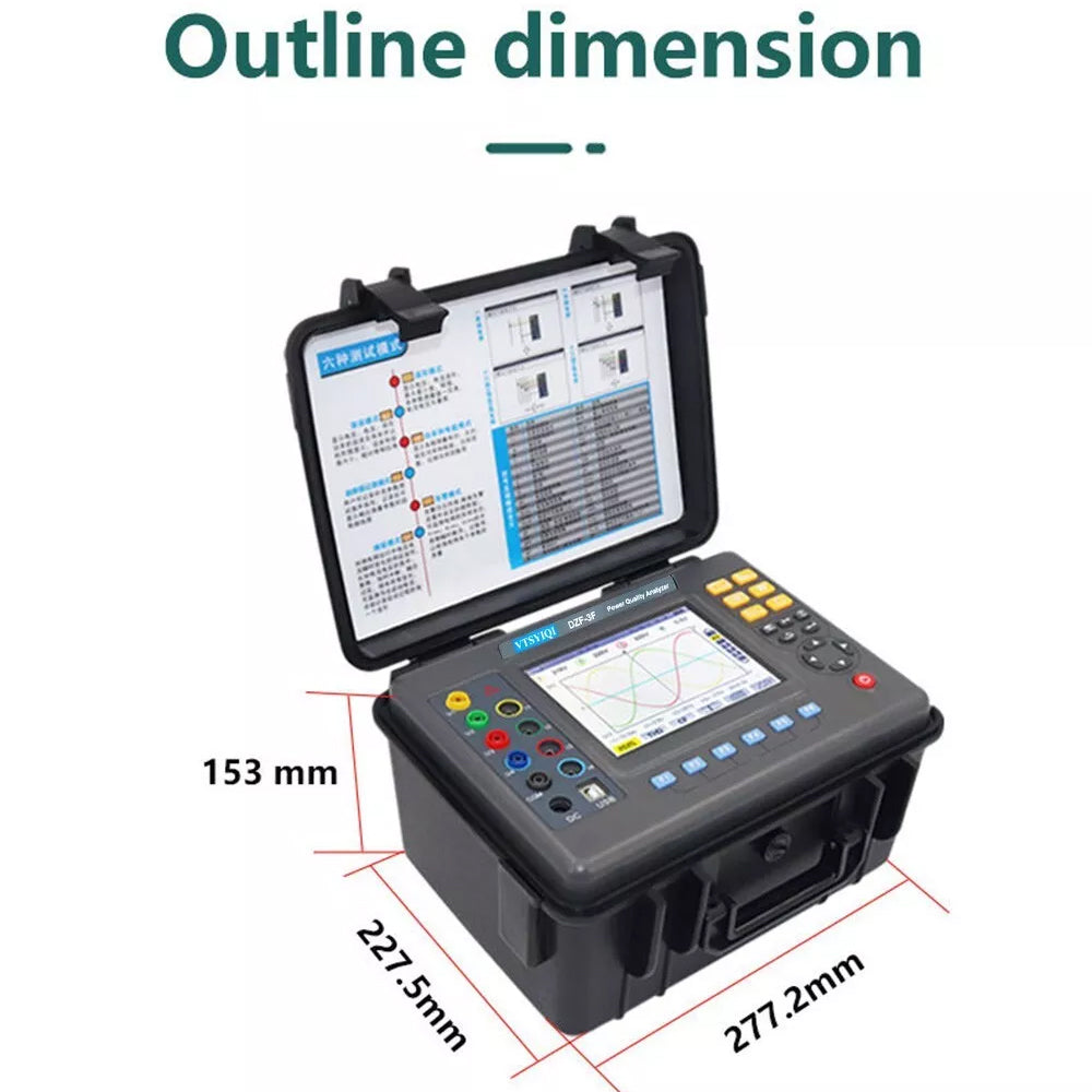3 phase power quality analyzer is a comprehensive test instrument specially designed by our company for three-phase, inr-functional, intelligent and simple man-machine operation Easy to use, large LCD color display, high resolution, bilingual interface in Chinese and Enalish. box structureandotherfaaturessimultaneousmeasurementof4 currents(ABC three-ohase and minimum vaoues voltages (ABC three -phase vollale and neutral to ground vollael current and vollage peaks, maximum reactive power, apparent power, power factor, displacement power factor, active energy, reactive energy, apparent energy,rarimonic ratio, total harmonic distortion Degree