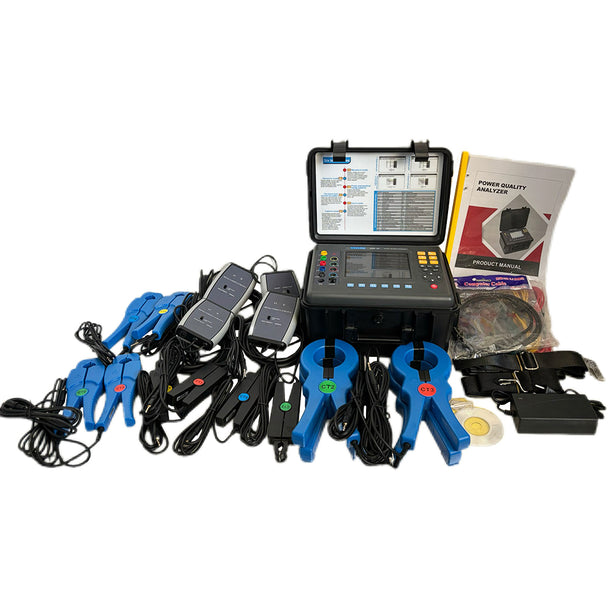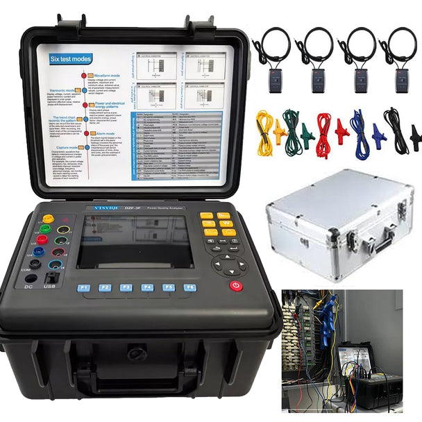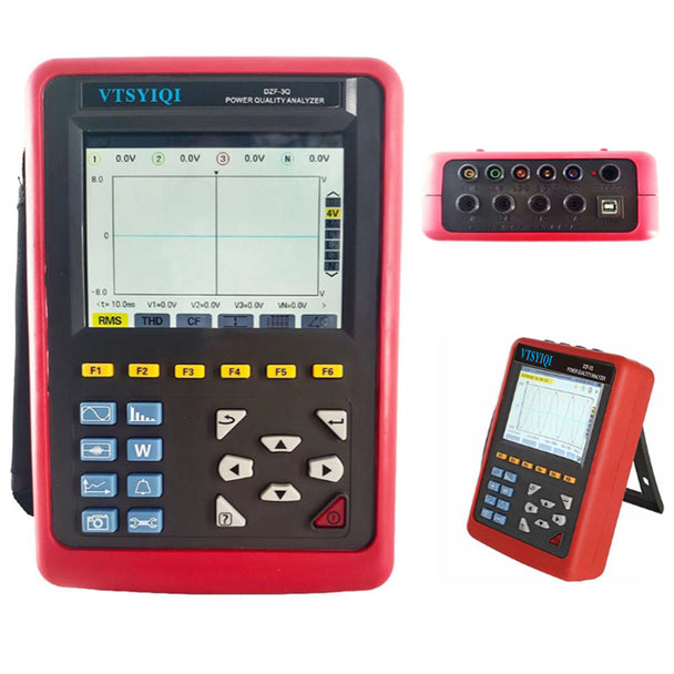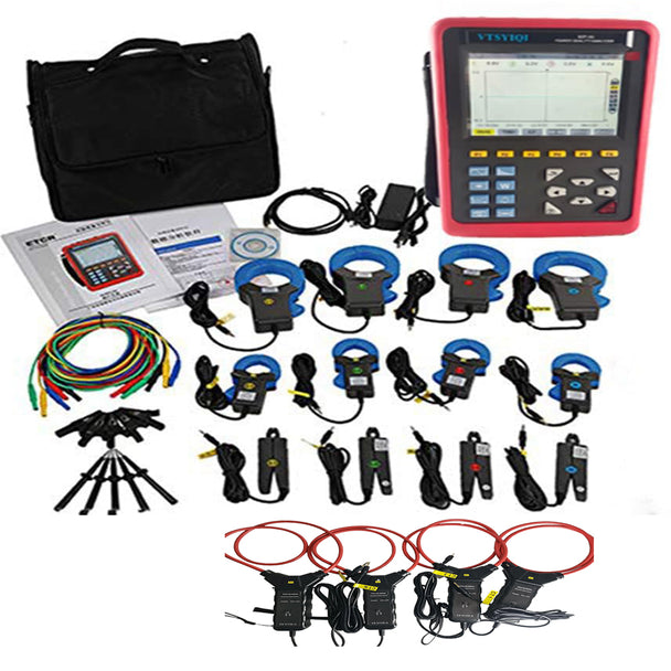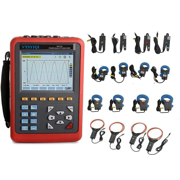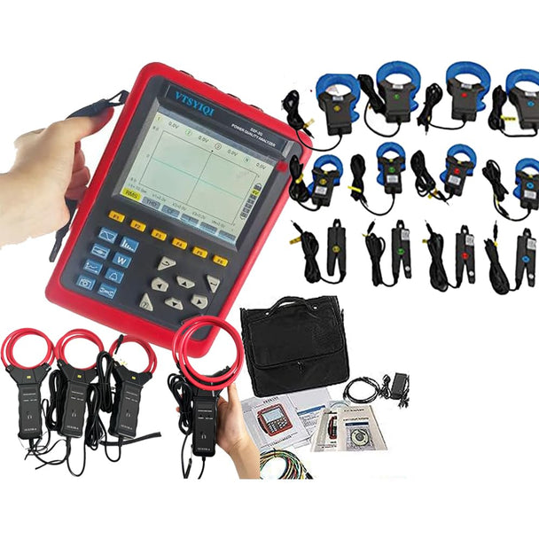 VTSYIQI Multifunctional 3 Phase Power Analyzer Energy Quality Meter with Current 10mA-6000A 1set Small Sharp 2sets Circle Current 1set Flexible Coil Current Clamp USB Interface Real-Time Display