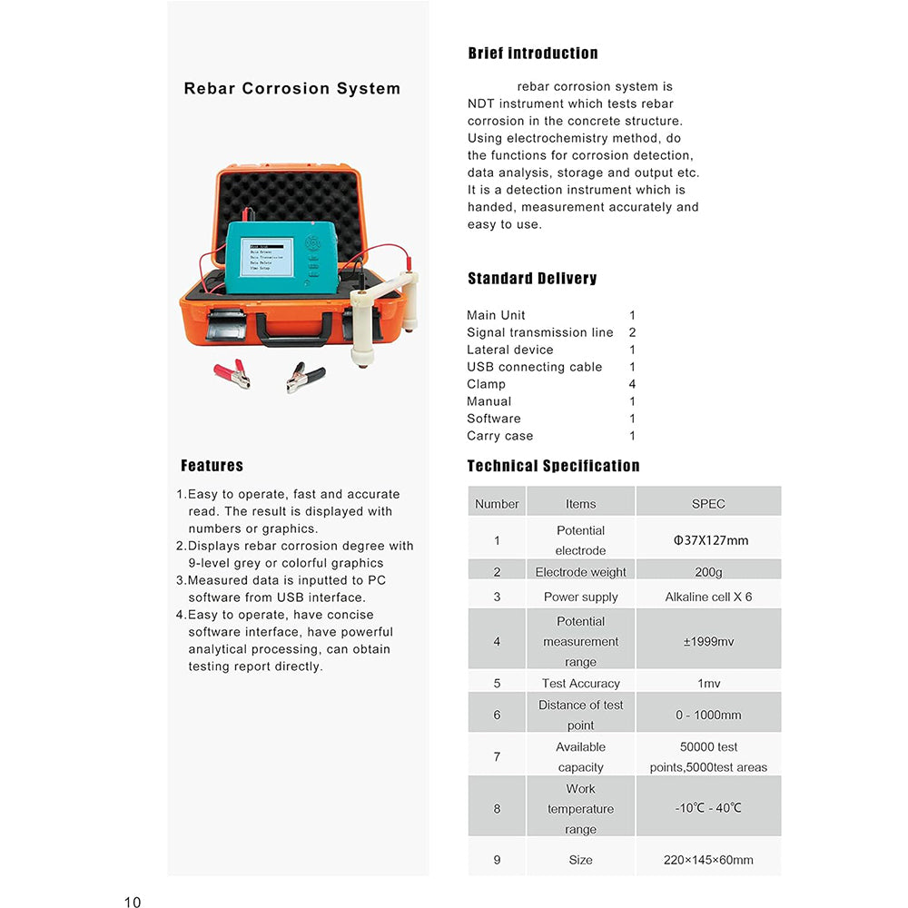 VTSYIQI Rebar Corrosion Detection Digital Steel Bar Rust Detector with Measure Potential ±1000mv Accuracy ±1mv Distance 0-1000mm Measure Area 8100 m2 USB Interface 50000 Test Points