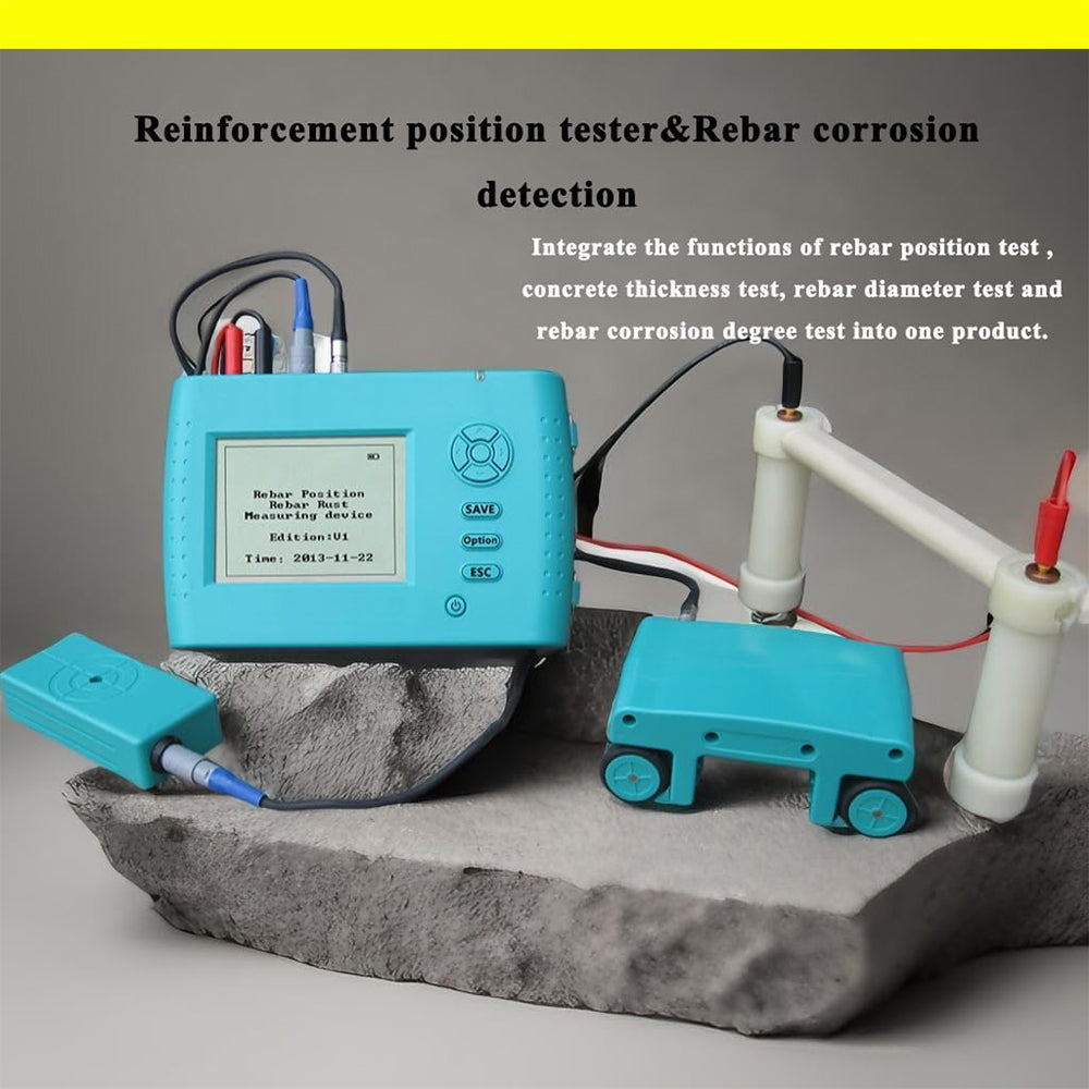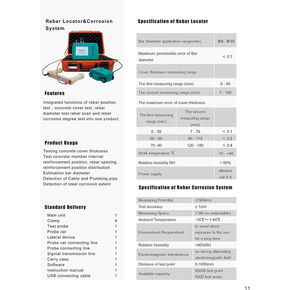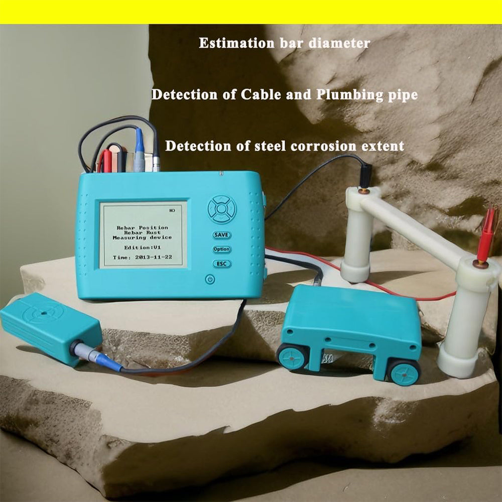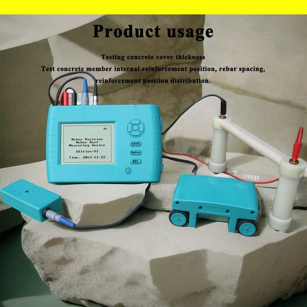 Testing concrete cover thickness Test concrete member internal reinforcement position, rebar spacing, reinforcement position distribution.Estimation bar diameter Detection of Cable and Plumbing pipe Detection of steel corrosion extent.