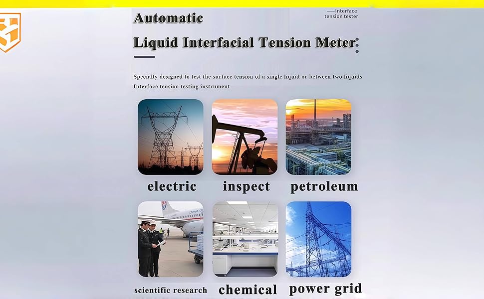 Application field 1) Oil aging test, especially transformer oil (ASTM D-971) 2) Determination of Surfactant Effectiveness in Wetting Agents and Cleaners Test Surfactant Solution Concentration. 3) Canning approval and cleaning validation in the food industry. 4) Interfacial tension measurements for quality control and optimization of emulsifiers. 5) Cooling lubricant surface tension test.