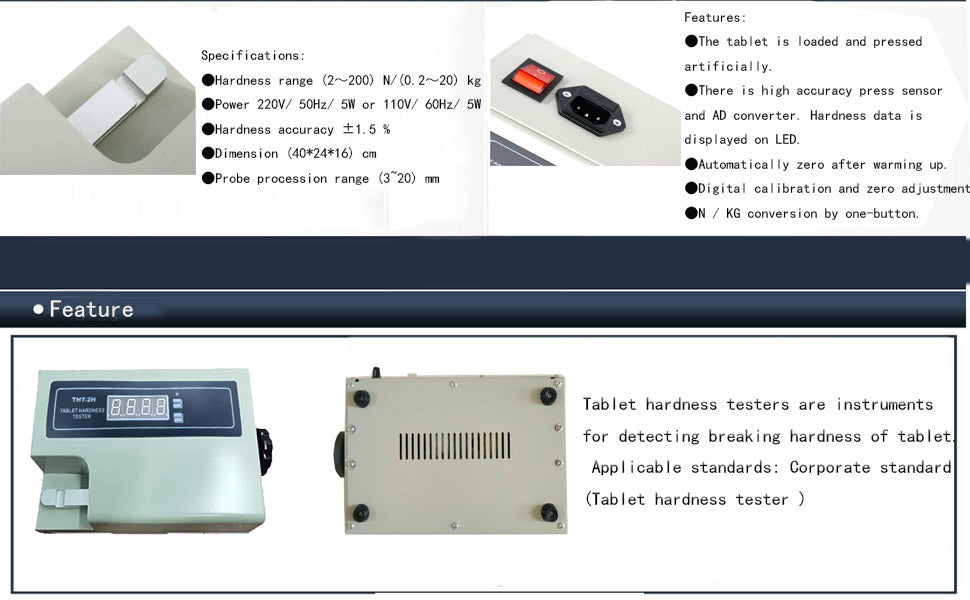 VTSYIQI Tablet Hardness Tester Tablet Durometer with Hardness Range 2 to 200N/0.2 to 20kg Accuracy ±1.5% N/KG Conversion by One-Button for Detecting Tablet Breaking Hardness