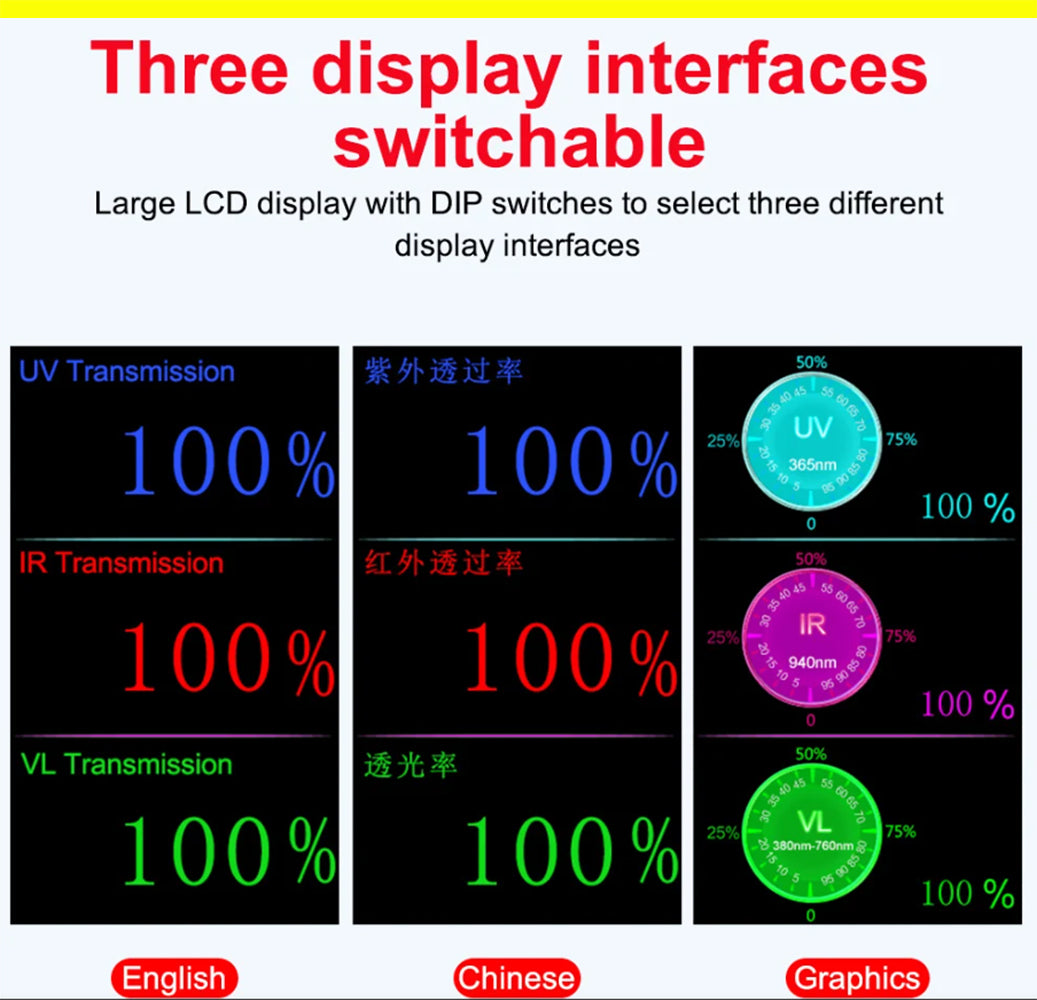 VTSYIQI Optical Transmittance Meter Light Transmittance Meter Tester with Measuring Wavelength Range Visible Light 380nm-760nm Infrared Peak Wavelength 940nm for UV Ultraviolet Visible Infrared Light Sources Plastics Glass Transmission Test