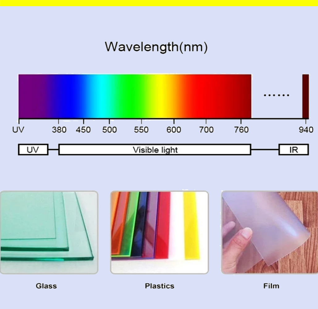 Covering visible light range of 380nm-760nm and infrared peak wavelength of 940nm, suitable for measuring the optical properties of different materials.