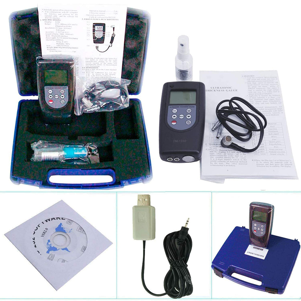* Applicable to measure the thickness of many materials, e. g. Steel, Cast iron, Aluminum, Red copper, Brass, Zinc, Quartz glass, Polyethylene, PVC, Gray cast iron, Nodular cast iron.