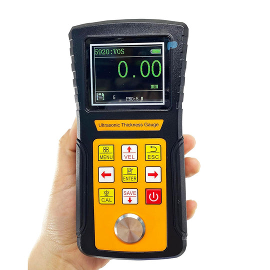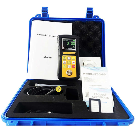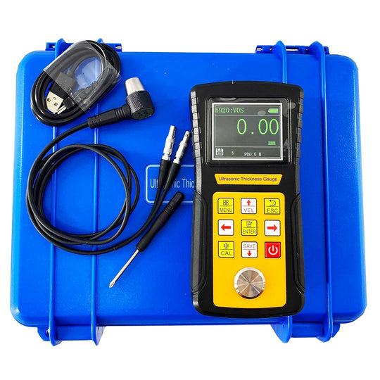 VTSYIQI Ultrasonic Thickness Measurement Gauge Ultrasonic Thickness Testing Machine with USB Port Measuring Range 0.75 to 600 mm Velocity Range (1000~9999) m/s LED Backlight Resolution 0.01mm About this item Introduction-------Ultrasonic Thickness Gauge measuring with ultrasonic wave,...Regular price $270.00 -