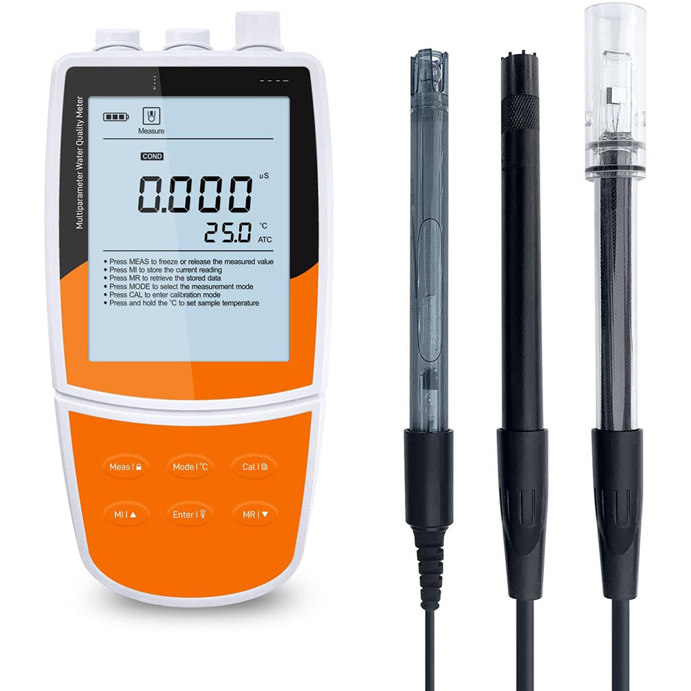 VTSYIQI Multiparameter Water Quality Meter Portable Multi Parameter Water Quality Meter with Conductivity Standard Solutions Range -1999.9 to 1999.9 mV for Measuring pH ORP Ion Concentration Conductivity TDS Aalinity Resistivity Dissolved Oxygen