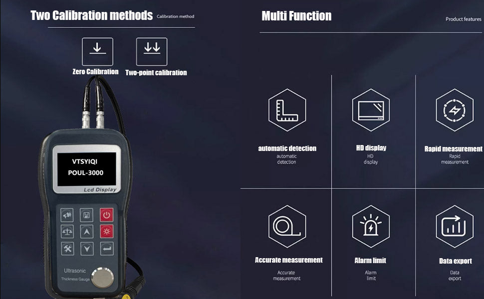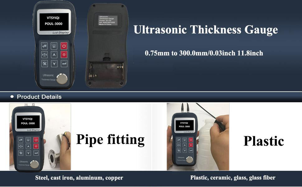 *Suitable for measuring metal (such as steel, cast iron, aluminum, copper, etc.), plastic, ceramic, glass, glass fiber and other any good conductors of ultrasound;