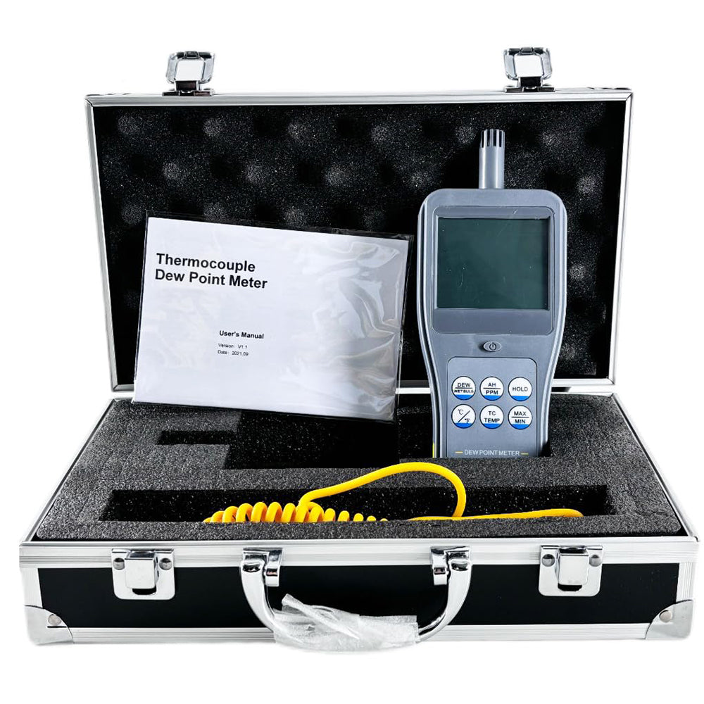 - VTSYIQI Dew Point Meter Thermocouple Dew Point Meter with Test Parameters Ambient Temperature,Dew Point Temperature,Wet Bulb Temperature,Relative Humidity,Absolute Humidity,PPM,Surface Temperature