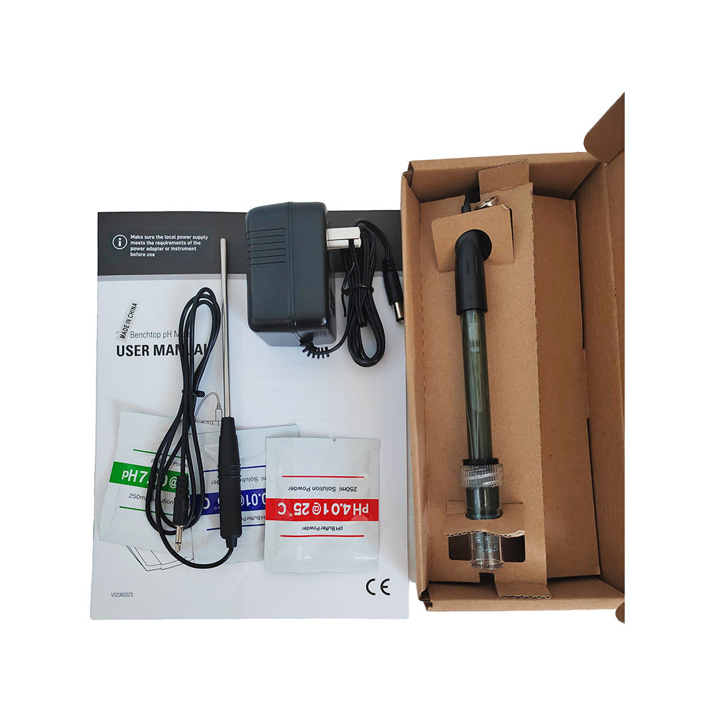 Classical benchtop pH meter is equipped with a backlit LCD display.