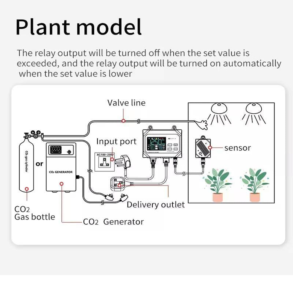 VTSYIQI Digital Carbon Dioxide (CO2) Controller & Monitor with CO2 Measurement Range 0-9999ppm Temperature Measurement Range 0~50°C(32°F~122°F) Colour Display Pressure Compensation