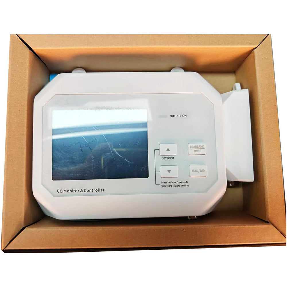 For monitoring and controlling carbon dioxide levels in greenhouses or residential settings, featuring temperature and humidity displays. Suitable for wall mounting, equipped with a large-format colour LCD screen for easy data reading.
