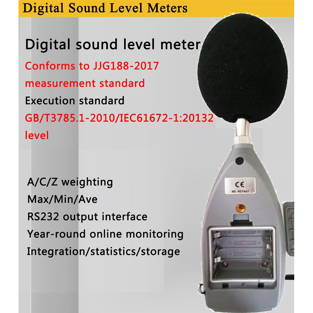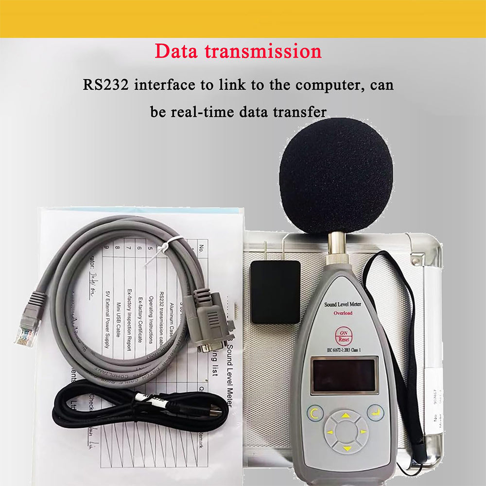 VTSYIQI Digital Class 1 Sound Level Meter Integrating Decibel Measuring with Integrating Function 10 Hz-20 kHz 25dB(A)-140dB(A) 8000 Groups Data Storage AC DC RS232 USB Outputs