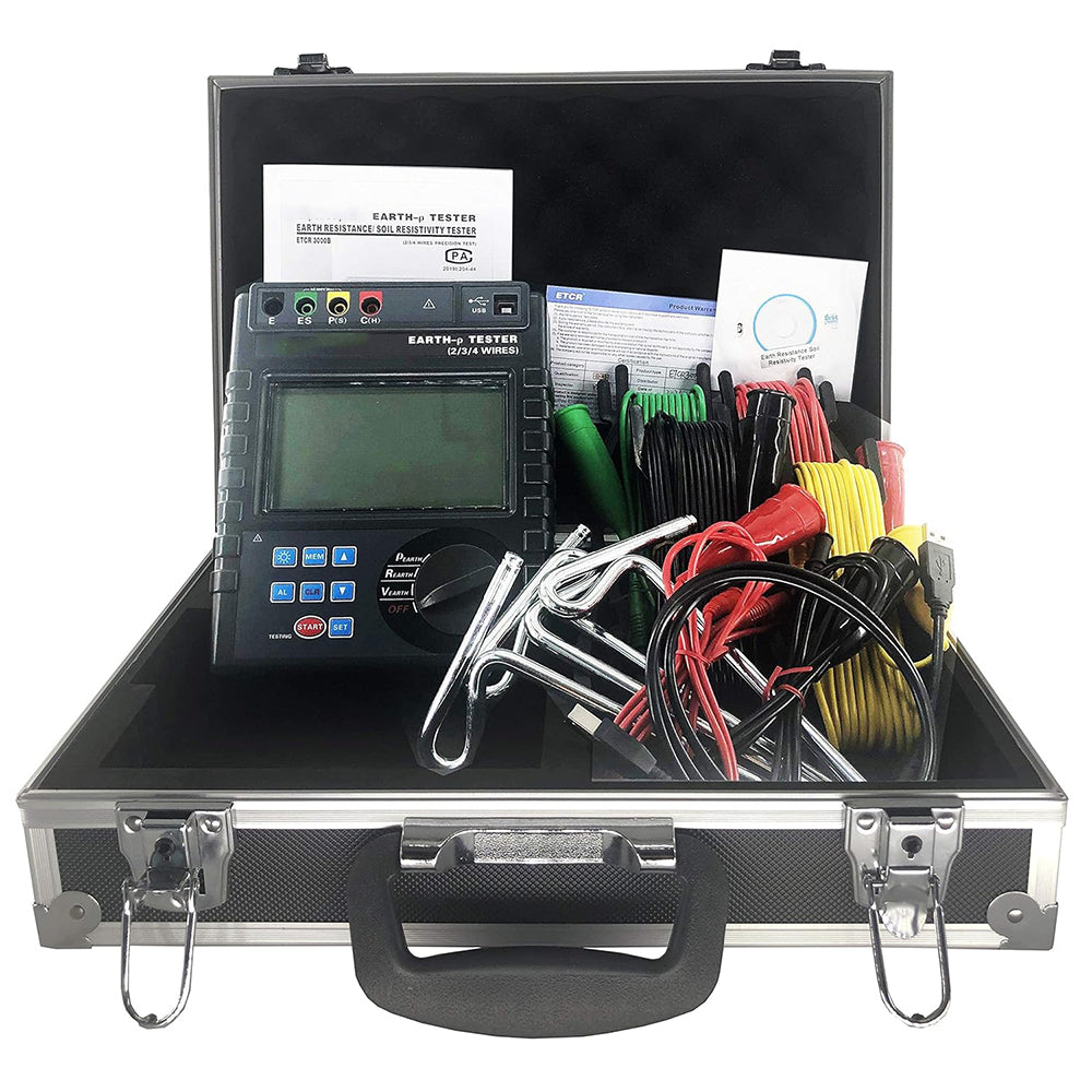 VTSYIQI Digital Ground Resistance Tester Soil Resistivity Tester Meter with Soil Resistivity Ground Resistance Earth Voltage 0.01Ω-30.00KΩ 0.00Ωm-9000kΩm 0V-600V LCD Display
