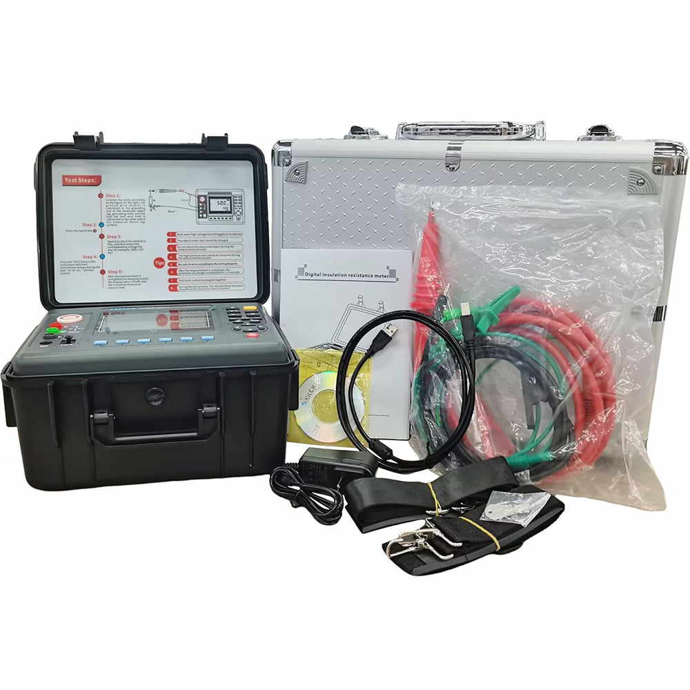 USB Connect---Communication Line:USB communication line 1PC Test Line:High voltage rob red 3meter, high voltage test line black 1.5meter, green 1.5meter Data Storage:500 groups, "FULL" symbol indicates that storage is full Data Review:Data review function: "MR" symbol display