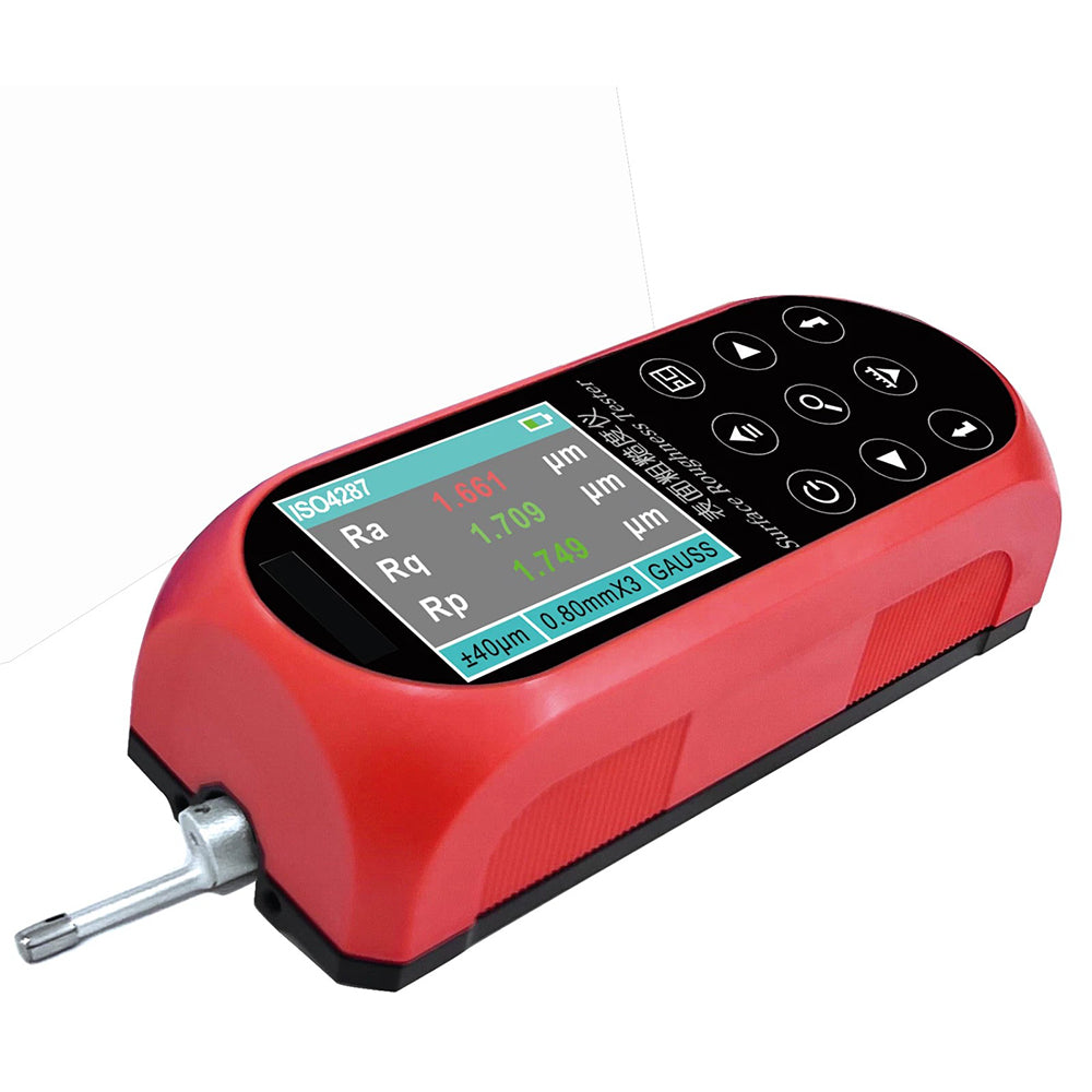 VTSYIQI Digital Surface Roughness Tester Surface Roughness Measurements with Parameter Measuring Range Ra, Rq 0.005μm~16μm Rz, R3z, Ry, Rt, Rp, Rv 0.02μm~160μm Rsk 0~100% Rs, Rsm 1mm Rmr(tp) 0~100% Measurement Range Z-axis 160μm X-axis 17.5mm