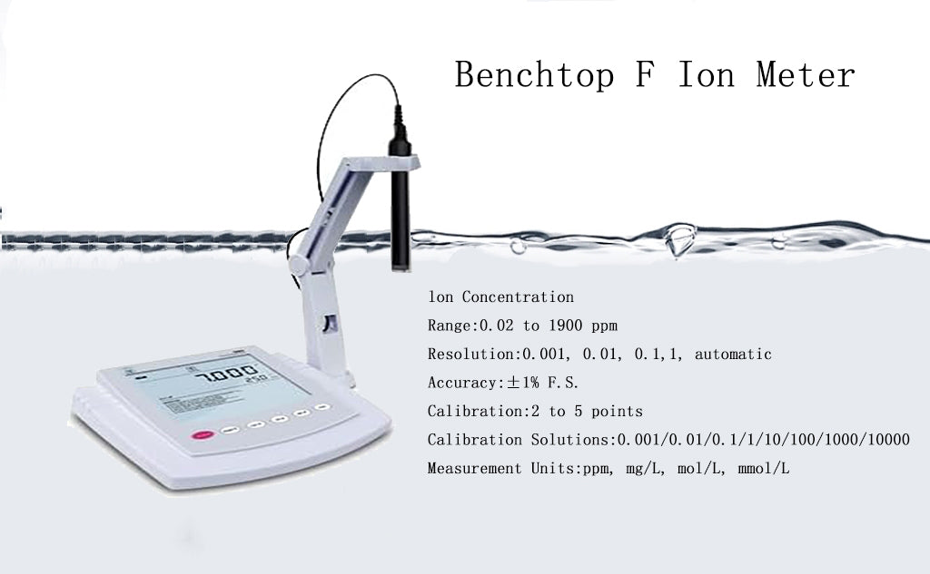 VTSYIQI Lab F Ion Meter Benchtop Fluoride Ion Meter with Calibration Fluid Range 0.02 to 1900 ppm Accuracy±0.5% F.S. USB Communication Interface Measurement Units ppm mg/L mol/L mmol/L Store 500 Sets of Data for Testing F Ion
