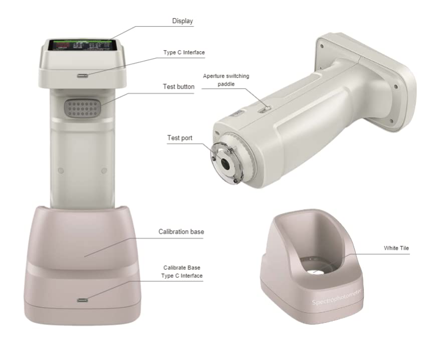 VTSYIQI Lab Spectrophotometers Digital Spectrophotometer with Measurement Repeatability dE*ab≤0.02 Measurement Caliber Φ11mm Φ10mm Φ6mm Φ5mm Φ3mm 1*3mm ▽11mm ▽10mm ▽6mm ▽5mm ▽3mm ▽1*3mm Reflectivity Resolution 0.01% for Plastics and Textile Color Test
