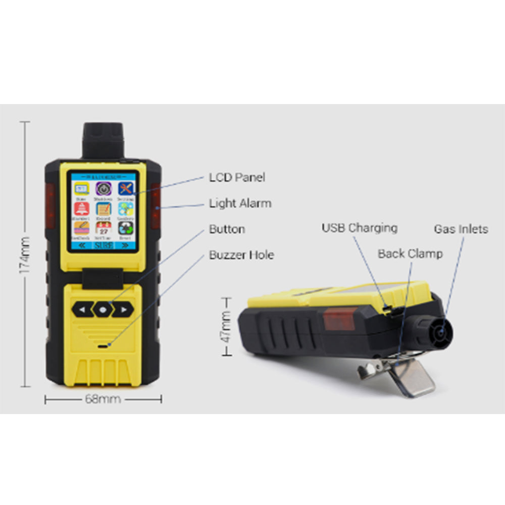 Indication:LCD displays real-time and system status; LED, audio and vibration alert for gas leakage, fault and low voltage, pump working state.